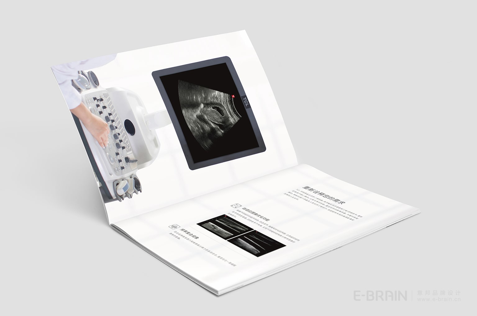 開陽超聲診斷系統(tǒng)的產(chǎn)品宣傳冊(cè),風(fēng)格現(xiàn)代簡約,設(shè)計(jì)元素延續(xù)了品牌的整體設(shè)計(jì)理念,以清晰明了的視覺效果展示產(chǎn)品的功能及優(yōu)勢(shì)。