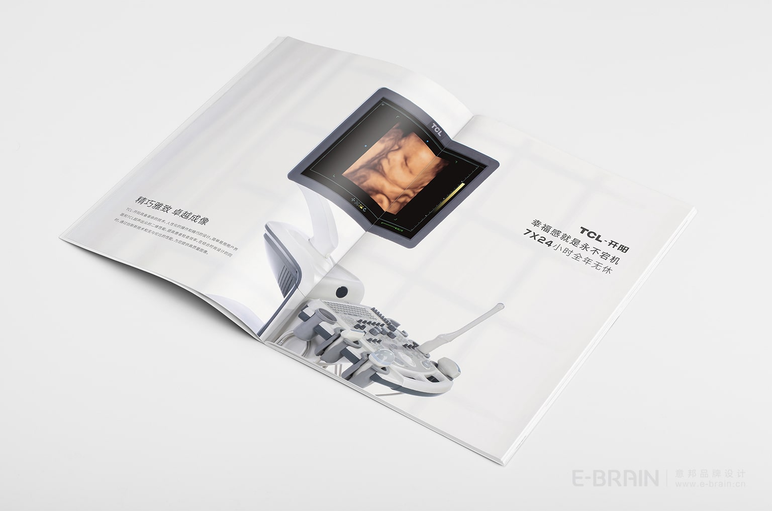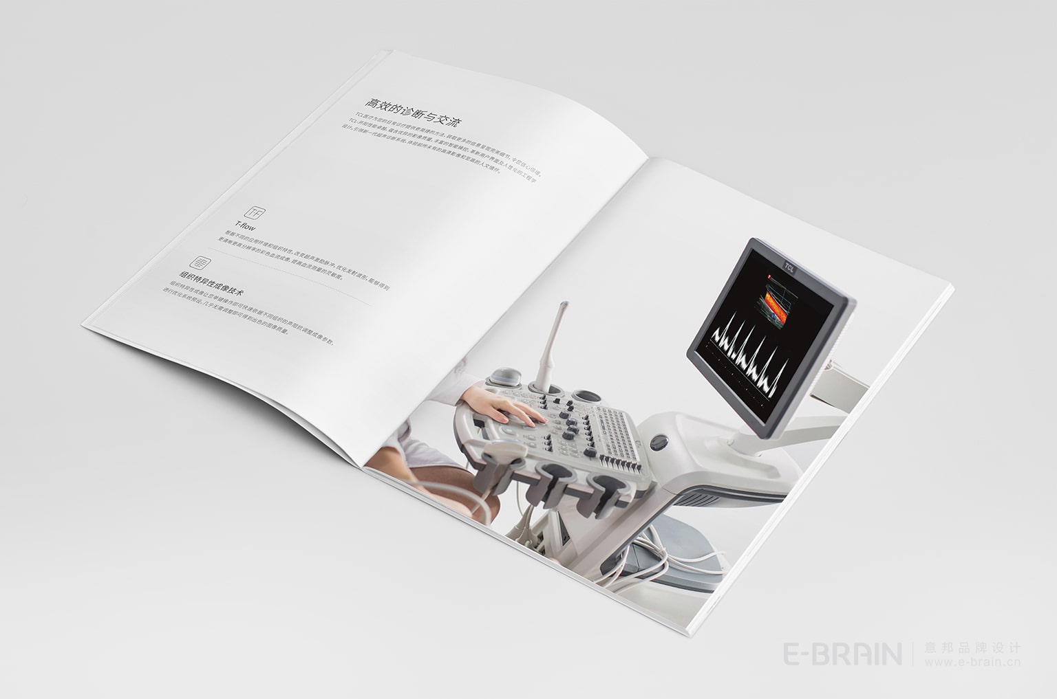 為了確保與TCL醫(yī)療集團(tuán)的品牌形象保持一致,產(chǎn)品宣傳冊(cè)設(shè)計(jì)沿用了品牌主色調(diào)紅白配色,強(qiáng)化了品牌視覺風(fēng)格的統(tǒng)一性,同時(shí)也能夠讓產(chǎn)品信息得到最大限度的展示。