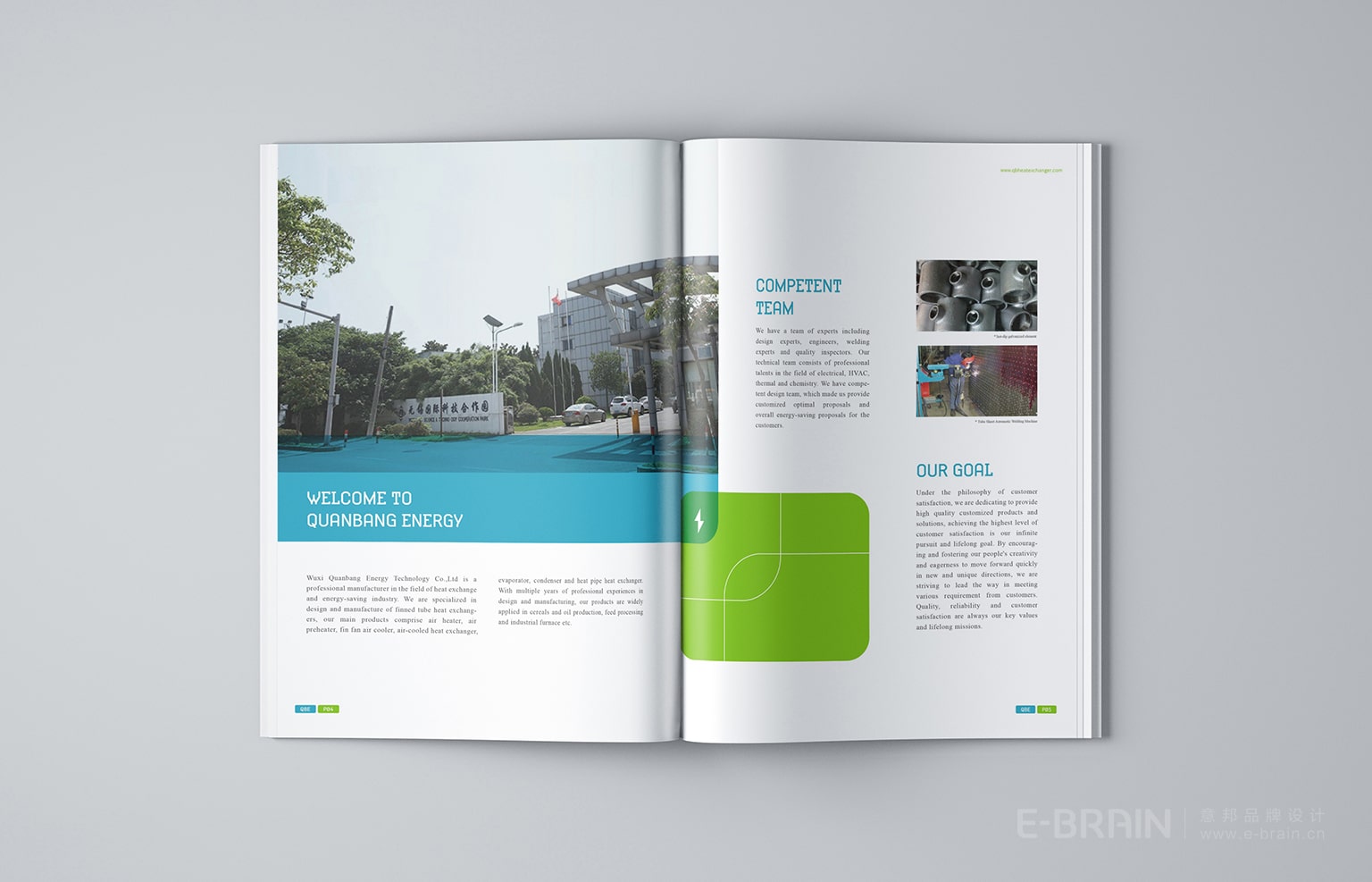 無錫全邦能源科技有限公司是一家節(jié)能型科技企業(yè),也是一家在換熱器行業(yè)有著多年豐富設計和制造經(jīng)驗的科技公司。意邦設計公司在畫冊設計中注重產(chǎn)品信息的合理傳達與分布,畫冊版面設計給人干凈整潔的印象,傳達出了全邦能源注重為客戶提供優(yōu)質的產(chǎn)品與服務的品牌理念。