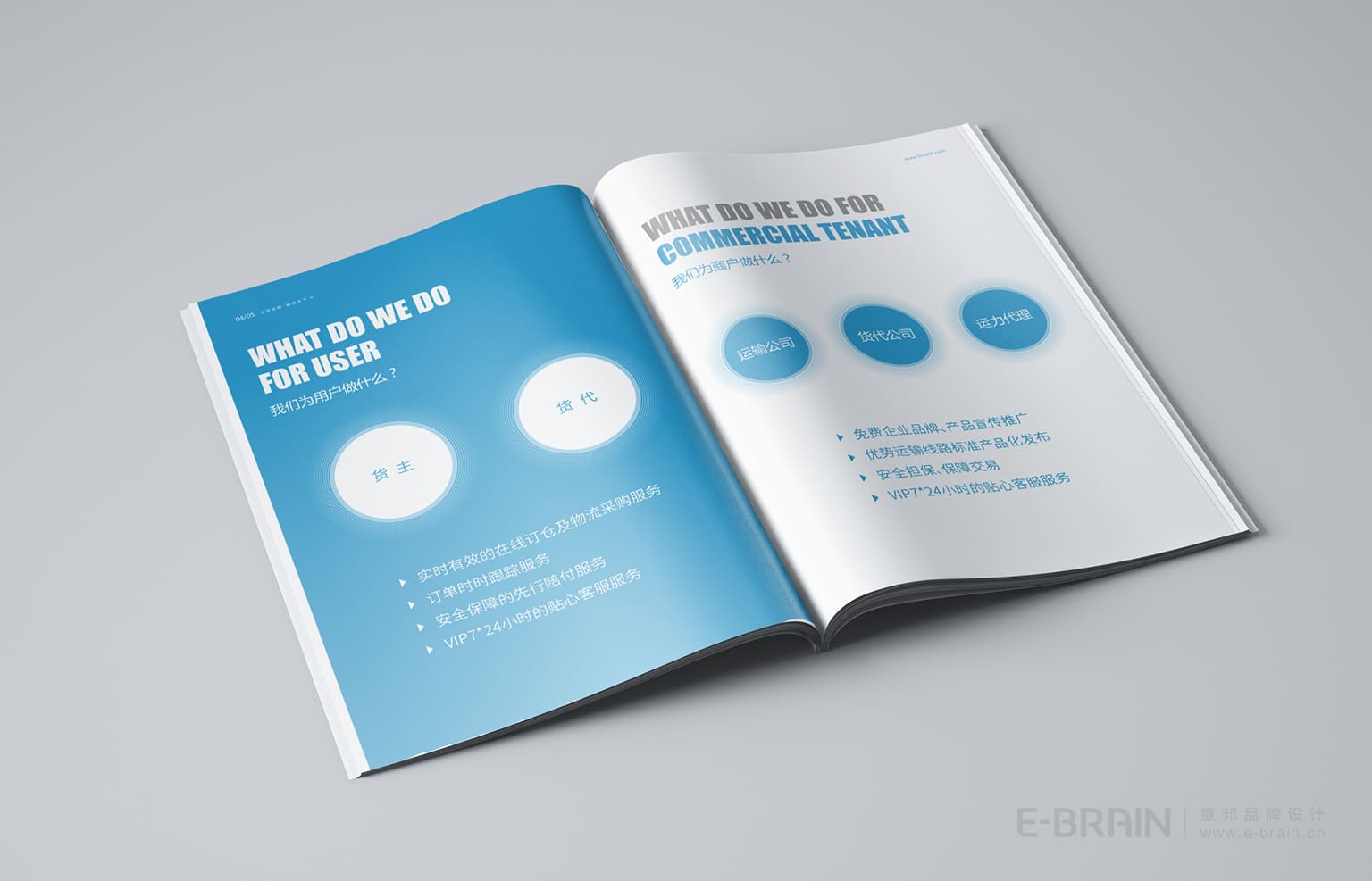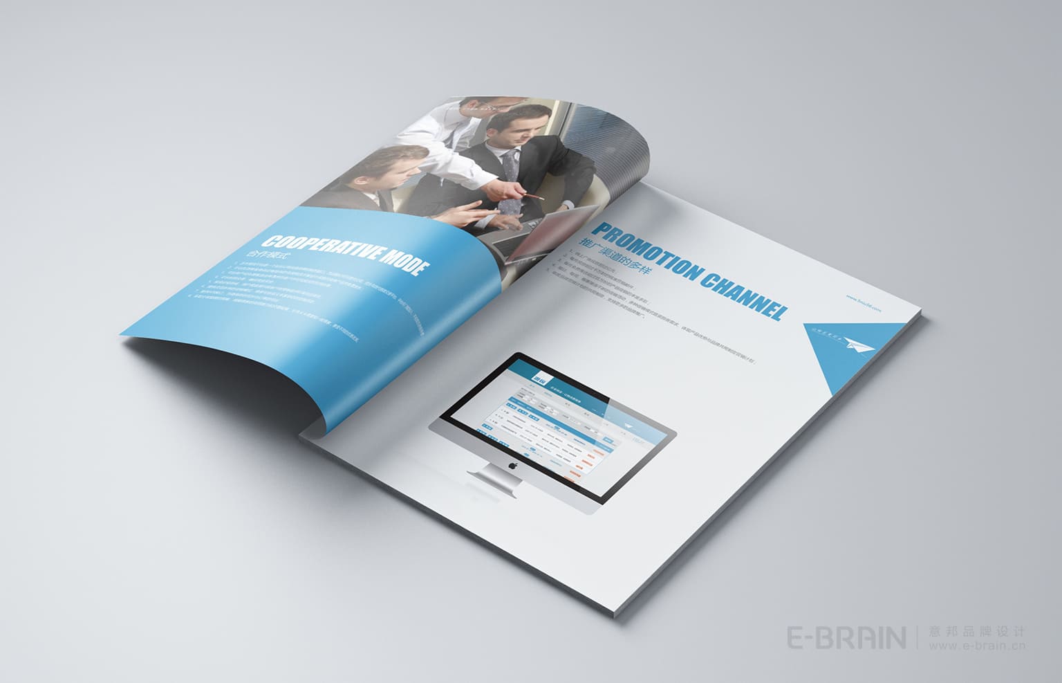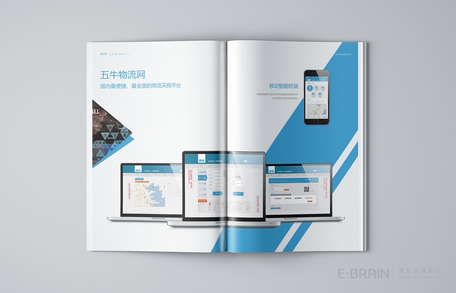 畫(huà)冊(cè)版式設(shè)計(jì)現(xiàn)代、簡(jiǎn)潔,注重信息層次分明,確保閱讀流暢性。畫(huà)冊(cè)以科技藍(lán)為主色調(diào),象征專業(yè)與信賴。