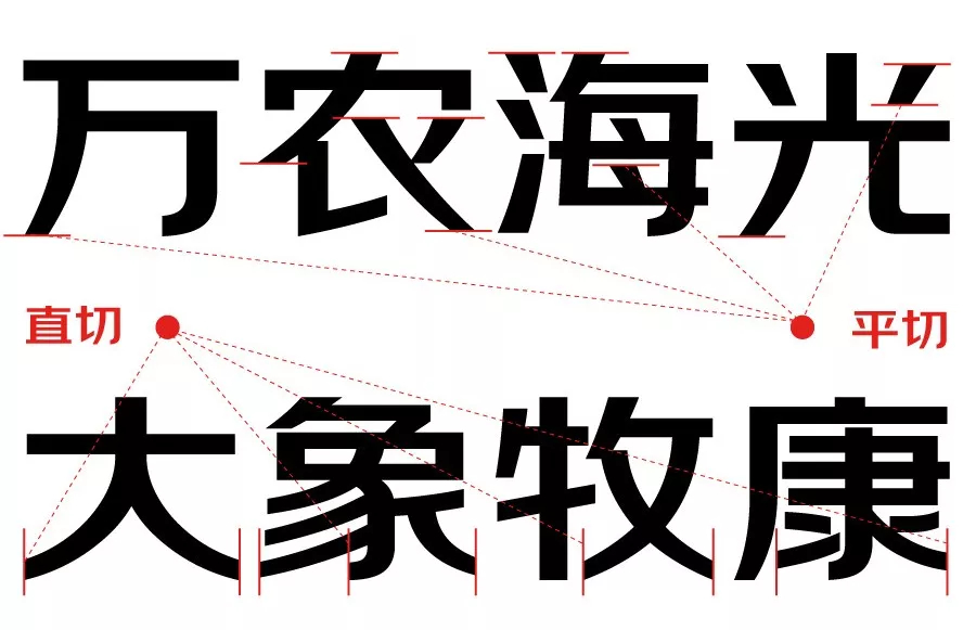 在筆畫方面,京東朗正體采用了大量的平切、直切的筆畫切角方式,尤其在起筆和收筆處,這樣的筆畫設(shè)計給人的視覺感受就是直接、干凈利落、有科技感,也比較簡潔時尚。