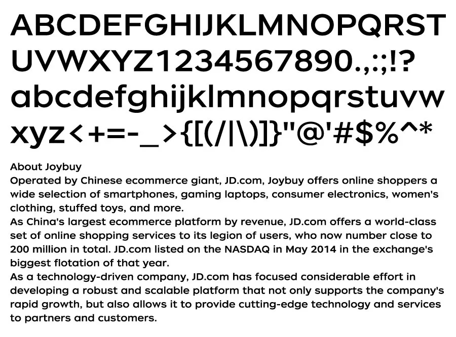 在大眾的印象中,京東是一個成熟而專業(yè)的大型綜合型電商平臺,一向以品質(zhì)精良、高效送達、用戶體驗友好著稱。如今,京東正在朝向更加開放、更加多元的方向高速馳騁著,以成為全球最值得信賴的企業(yè)為目標。在這個背景下,具有高識別度并融匯著京東企業(yè)文化特色的專屬字體——京東朗正體誕生了,它承載著讓世界更好地認識京東的使命。