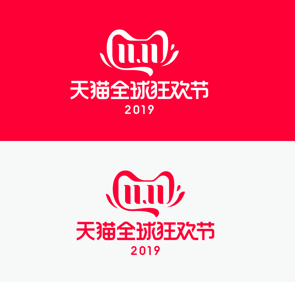 2019天貓全球狂歡節(jié)LOGO延續(xù)了“貓頭”設(shè)計(jì)方案,整體比較圓滑和流暢,顏色也是采用經(jīng)典的慶典紅,紅色的飄帶和數(shù)字11.11組成了天貓標(biāo)志性的吉祥物圖案,看上去很飄逸,更有狂歡的激情,好像在拉攏大家一起狂歡的慶典氛圍。