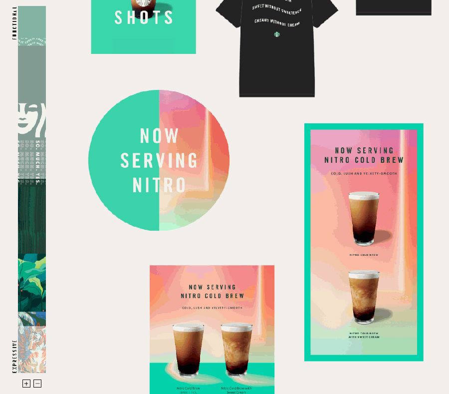 星巴克將「功能性/Functional」與「感染力/Expressive」作為視覺識別的評判指標,借此梳理、定調(diào)每一次的視覺應用。