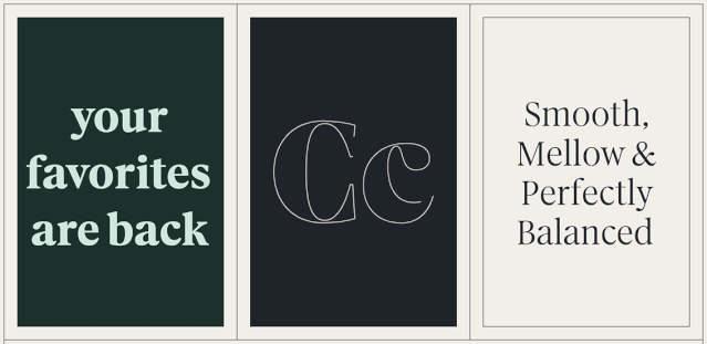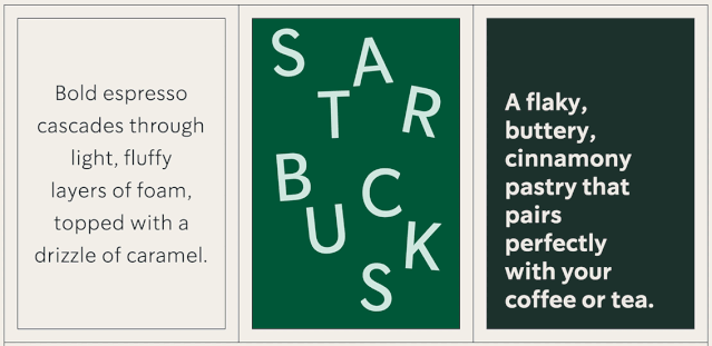 中規(guī)中矩的Sodo Sans 是星巴克運用最為廣泛的字體,常見于文案內(nèi)容;Lander 是三者中唯一的襯線字體,主要用于表達情緒感染力的情境中;而擁有俐落輪廓的Trade Gothic LT 則作為標題時使用。