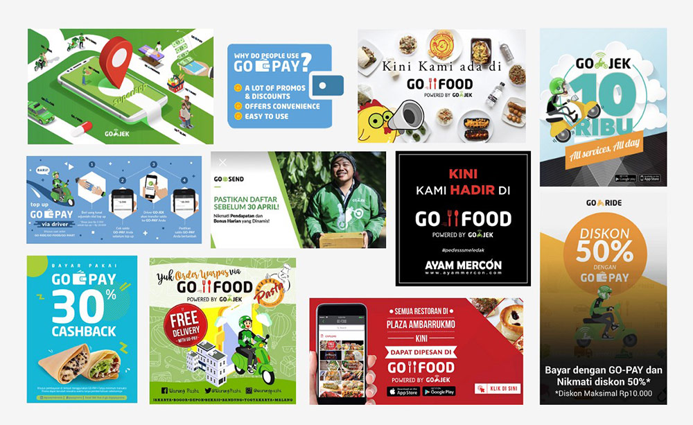 2010年,Gojek成立后,其創(chuàng)始人Nadiem Makarim親自為自己的公司設(shè)計(jì)了logo,logo設(shè)計(jì)的非常直觀,Go-jek的連接符用摩的代替,同時(shí)騎摩的的人物剪影頭頂上還自帶了WiFi信號,非常直接的表達(dá)了公司主要以互聯(lián)網(wǎng)摩的打車為主的快速出行服務(wù)。