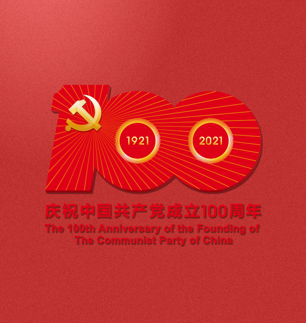 活動標識由黨徽、數(shù)字“100”、“1921”、“2021”和光芒線組成,其中數(shù)字“100”構成標識基本造型。