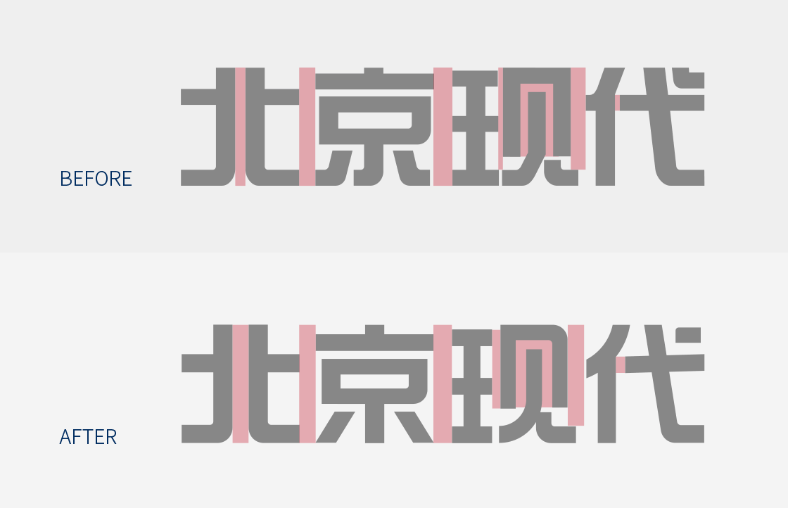 新的LOGO延續(xù)了現(xiàn)代集團(tuán)2017年推出的扁平化圖標(biāo)和深藍(lán)色配色方案,不僅更加扁平化了,字體還做了全新的設(shè)計(jì),現(xiàn)在商標(biāo)字體都是要全新設(shè)計(jì)的,不用使用字庫(kù)的字體,否則版權(quán)將是一個(gè)長(zhǎng)久的問題。