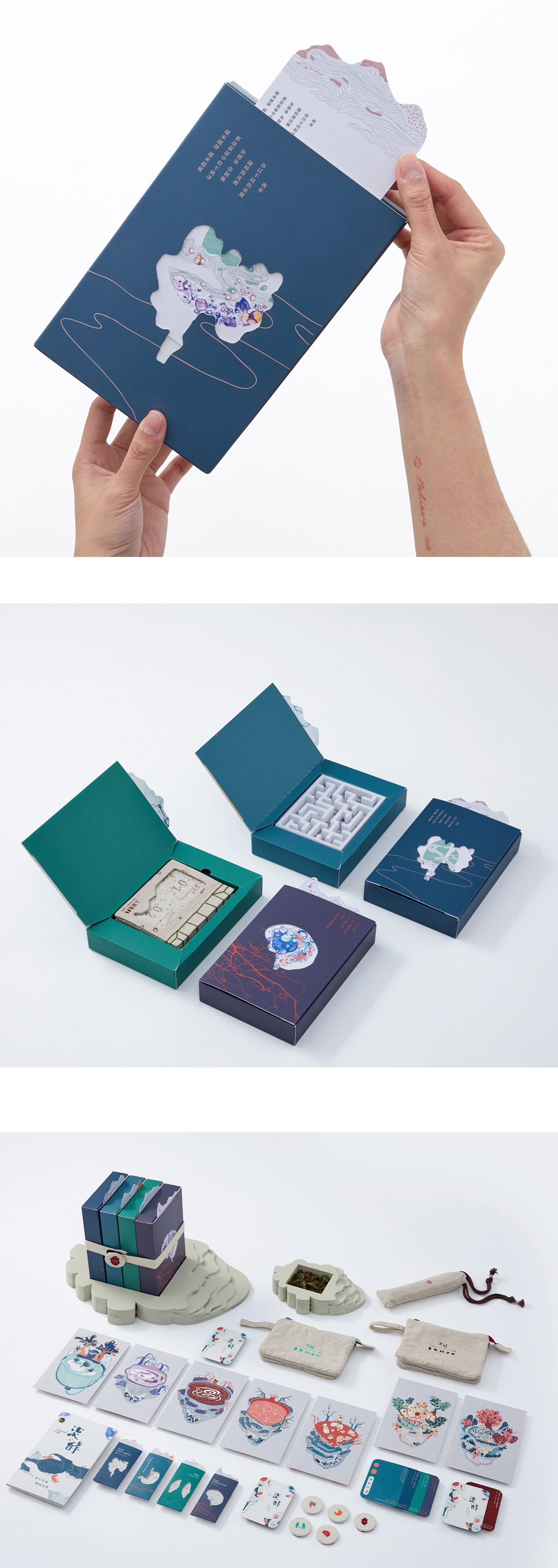 柒酵 : 取自菌種IMO的七天生成,土地酵母IMO第七天生長(zhǎng)成熟,能幫助土壤慢慢恢復(fù)生機(jī)并且再次孕育新生命。由于現(xiàn)今土地污染問題越發(fā)嚴(yán)重,所以我們找到了苗栗卓蘭-自然圈農(nóng)場(chǎng)很特別的土地酵母IMO,此酵母能改善土質(zhì)、讓受污染土地恢復(fù)生機(jī)、凈化水質(zhì)等...功效其農(nóng)場(chǎng)也是由此得以改善,因此我們跟農(nóng)場(chǎng)取材根據(jù)它不同的功效,設(shè)計(jì)出了四個(gè)IMO酵母體驗(yàn)盒,希望可以發(fā)揚(yáng)其酵母特色、功效及倡導(dǎo),輔助農(nóng)場(chǎng)里的游客能認(rèn)識(shí)到腳下這片土地的由來!,讓更多民眾能認(rèn)識(shí)土地的守護(hù)者-IMO,更是想喚醒大家保護(hù)土地的意識(shí),并且了解土地對(duì)我們的重要性! IMO酵母體驗(yàn)盒里的產(chǎn)品功能結(jié)合了感官的接觸,重在體驗(yàn)者與土地的連結(jié) 視覺 - 圖像認(rèn)識(shí) – 酵母IMO介紹手冊(cè)及生態(tài)圖海報(bào) (體驗(yàn)盒一) 嗅覺 - 氣味接收 – 酵母IMO手抄紙氣味肥料書 (體驗(yàn)盒二) 觸覺 - 接觸實(shí)體 – 酵母IMO固態(tài)化的凈水菌球 (體驗(yàn)盒三) 及 金屬球迷宮 趣味產(chǎn)品(體驗(yàn)盒四) 另外,四個(gè)IMO酵母體驗(yàn)盒中,還將人體器官代入作象征,分別因應(yīng)酵母IMO的不同特性,將其對(duì)應(yīng)四個(gè)體驗(yàn)盒里的產(chǎn)品功能,比喻為大腦、肺、胃、腸子,講述酵母IMO之于土地的重要性,猶如器官之于人體一樣重要,間接傳達(dá)人與土地的密切關(guān)系,同時(shí)使酵母IMO的特性更好被理解。