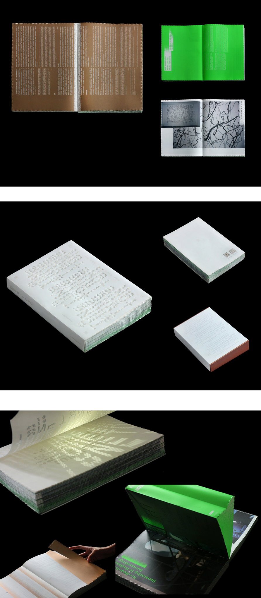 這本畫冊收錄了中國美術(shù)學(xué)院雕塑與公共藝術(shù)學(xué)院“青年藝術(shù)家展研計(jì)劃”推行近四年的成果。各專業(yè)工作室的青年學(xué)子和藝術(shù)家“秀”出了自己最好的作品。青春交響異彩紛呈,這些作品的主展場是在中國美術(shù)學(xué)院雕塑與公共藝術(shù)學(xué)院的十號(hào)樓展廳,被命名為“銅場”。這個(gè)“場”字是腳踏實(shí)地的空間展場,是青年藝術(shù)探索的實(shí)驗(yàn)場,是學(xué)術(shù)交流、專業(yè)互動(dòng)的能量場。近四年來銅場依靠中國美術(shù)學(xué)院青年教師與學(xué)生組成的團(tuán)隊(duì)進(jìn)行策劃、推廣、管理和運(yùn)行,做了大量的工作,面向社會(huì)推介青年藝術(shù)計(jì)劃,活躍了學(xué)術(shù)氛圍,擴(kuò)大了藝術(shù)的影響力,并取得了可喜的成績。目錄板塊——序 / 教學(xué)展覽 / 人和空間 / 項(xiàng)目展覽 / 工作坊 / 講座 / 關(guān)于 T team 書籍設(shè)計(jì)的前、后8p將TONE的形態(tài)模切同一位置,反面是不同形態(tài)點(diǎn)元素的擴(kuò)散,對應(yīng)銅場年鑒四個(gè)字。章節(jié)頁前設(shè)計(jì)了兩面撕拉頁,撕開后,紙張的再造肌理與色彩襯托豐富了三張紙的層疊效果。為突出藝術(shù)家及主講人信息,將展覽與講座的信息采用M折的設(shè)計(jì)形式。
