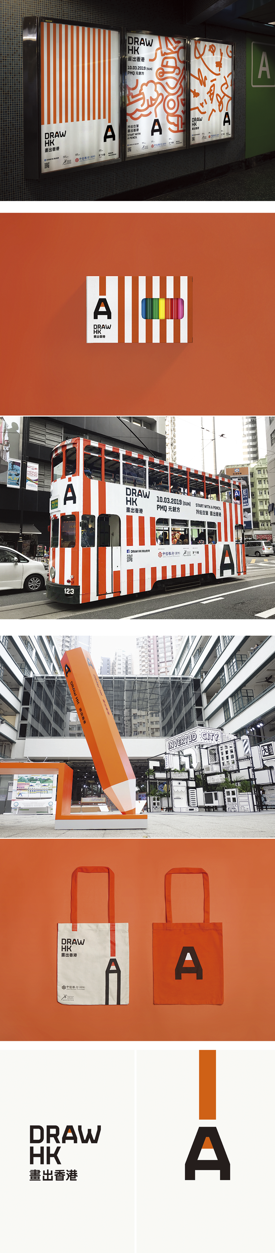 巴西建筑大師奧斯卡·尼邁耶(Oscar Niemeyer)說過他小時(shí)候母親叫他用手指在空氣中繪畫,而已他需要的卻是一支筆,因?yàn)樗靼桩?dāng)他擁有一支畫筆,他就可以任意創(chuàng)作,直至他死去。由此可見,一支畫筆不只是紙上的純粹快樂,還可以影響我們的生活。DrawHK 正正認(rèn)為畫畫的世界里,就是無年齡和能力的限制,只有天馬行空的創(chuàng)作力及獨(dú)特性。因此主視覺設(shè)計(jì)上都圍繞著一支筆出發(fā),而標(biāo)志上更將「DrawHK」中的「A」字轉(zhuǎn)化成一支畫筆,令活動(dòng)的焦點(diǎn)突顯出來,好讓所有年齡層都容易消化這個(gè)活動(dòng)的主題。
