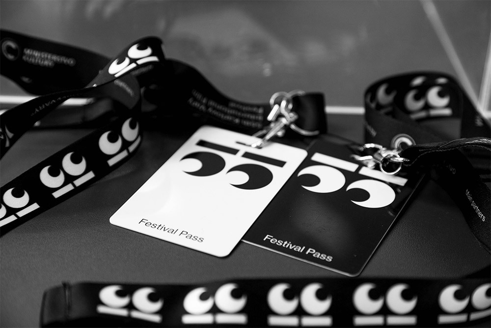 今年的數(shù)字55則化身一雙雙明亮的大眼睛,反映了重新聚在一起的快樂,也靈動的表現(xiàn)出了大家在看電影時以及對電影節(jié)的期待。