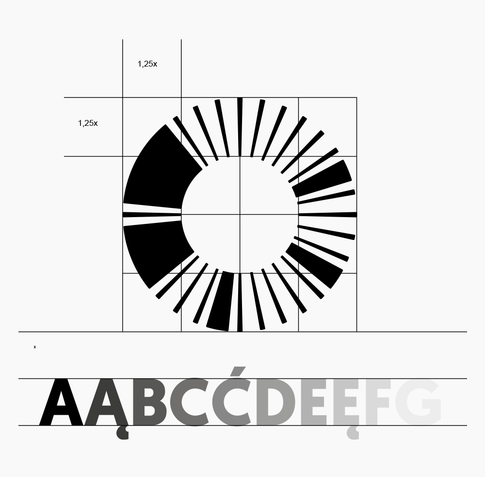 新的圖形基于一個(gè)圓形展開,該圓根據(jù)32個(gè)波蘭語字母被分成了32等份,然后在對(duì)應(yīng)學(xué)校的字母名稱,用顏色填充相應(yīng)的切片構(gòu)建出一個(gè)獨(dú)特的符號(hào)。