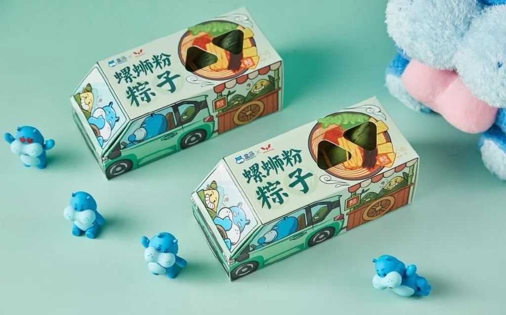 除了在車型上“折騰”,五菱跨界產(chǎn)品的領(lǐng)域也是越來(lái)越廣。像端午節(jié)聯(lián)名盒馬鮮生,推出了螺螄粉口味的粽子,包裝盒以汽車造型設(shè)計(jì)。
