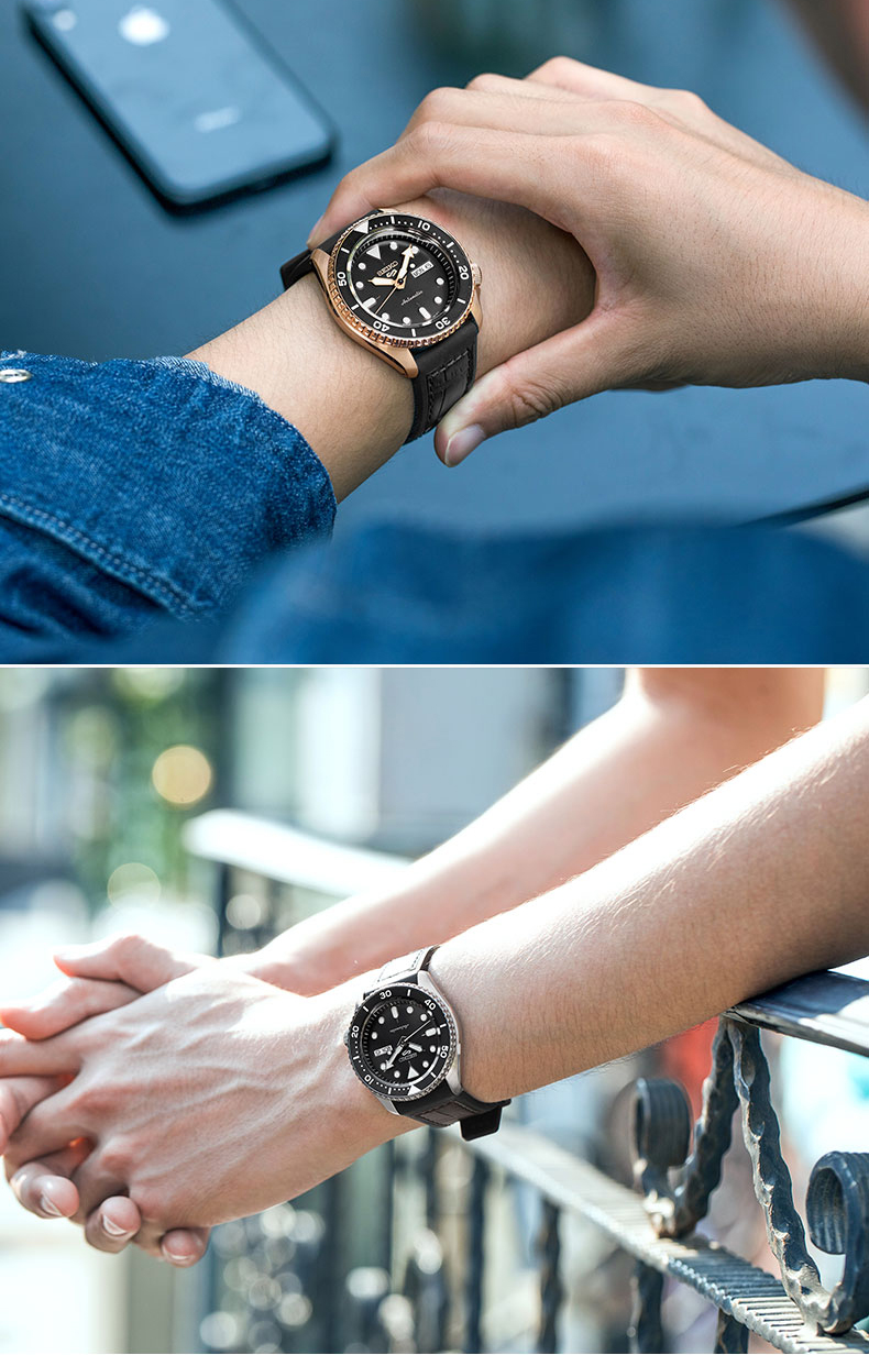原先盾牌包圍的“5”變成了,角度傾斜的方正、剛硬的數(shù)字“5”。除此之外,還代表著“SEIKO”中的“S”字母,“S”象征體育精神,意為“Sports” 和“Style”。